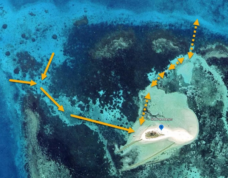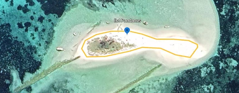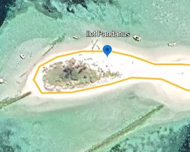 L'îlot pandanus est un petit ilot dont le "grand tour" fait à peine 300m de long. Les restes d 'un ancien ponton sont présents. profitez du sable blanc et de l'eau transparente.