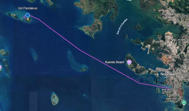 L'îlot pandanus semble tout droit tiré d'un film. Petit ilot de sable psoé au milieu du lagon avec un peu de végétation. Posé sur cet ilot vous vous sentez comme perdu au milieu de l'océan. Cet ilot fait partie de ces petits paradis accessibles facilement par tous et qui se trouve à 1h de navigation de Nouméa mais quelques minutes de Paita. Cet îlot est le lieu idéal pour nager et apercevoir de nombreuses espèces marines. Le sable blanc et les eaux turquoise font de cet îlot le lieu idéal pour une journée détente.